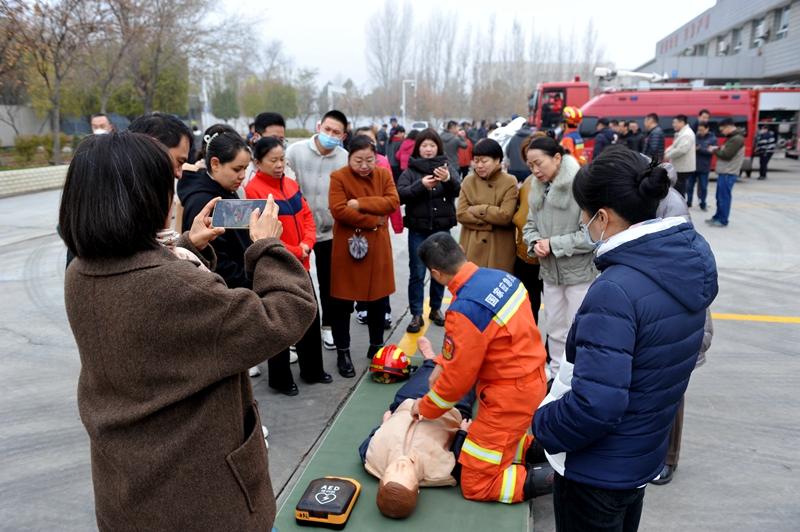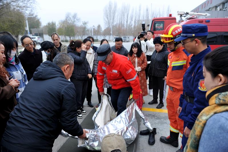 在互动体验阶段,新疆油田队为观众安排了精确的射水目标、灭火器的使用、隔热服的佩戴和AED的使用,让大家亲身体验救援工作,增强消防安全意识。