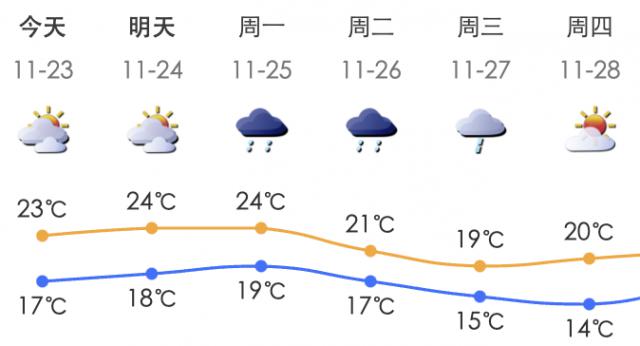预估 11 月 23 日至 27 日本,中国将出现大风降温和雨雪天气,期间大部分地区气温将明显下降。届时,广东气温稍有升温后将再次下降,很可能在下半年创下新低。