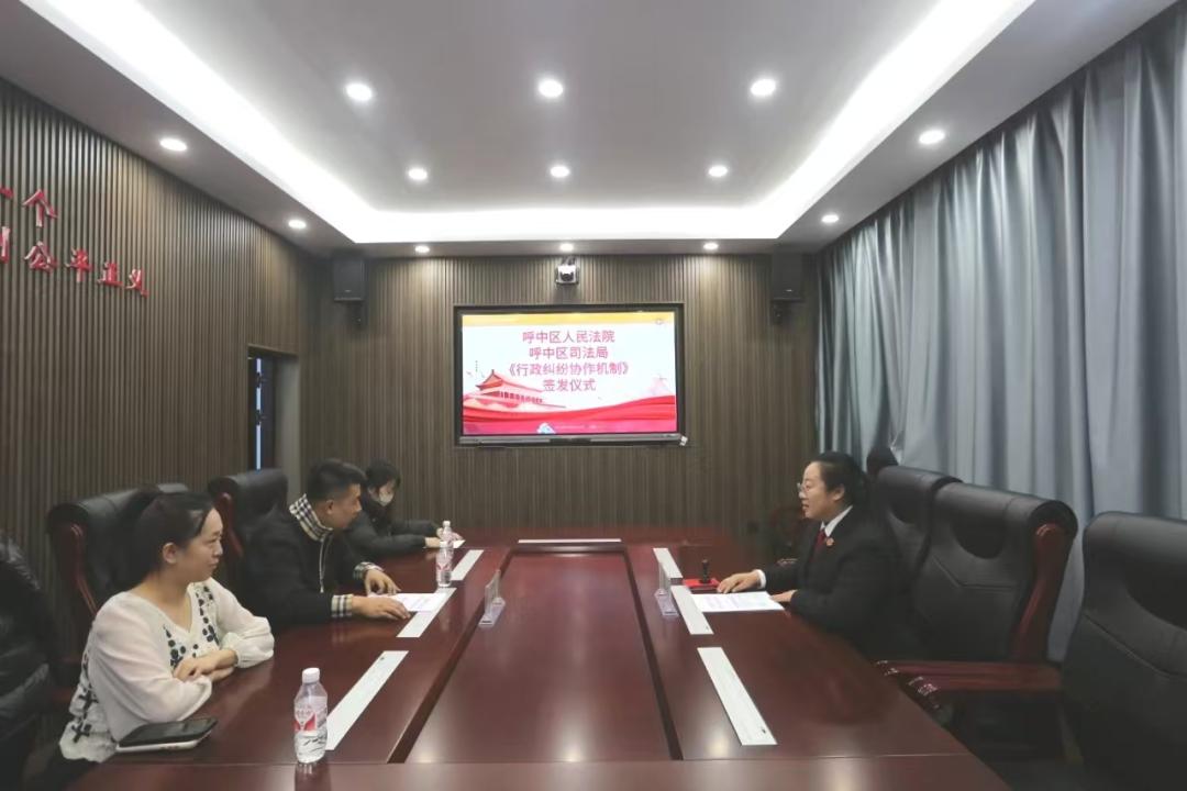 大兴安岭呼中区人民法院与区司法局共同建立了《行政纠纷合作机制》。重点关注法院和司法局协同推进实质性化解政争的总体要求、合作原则和职责分工,为推进实质性解决行政争议提供了指导和依据,是深化执法司法联动、加强实质性解决行政争议的新举措和新突破。