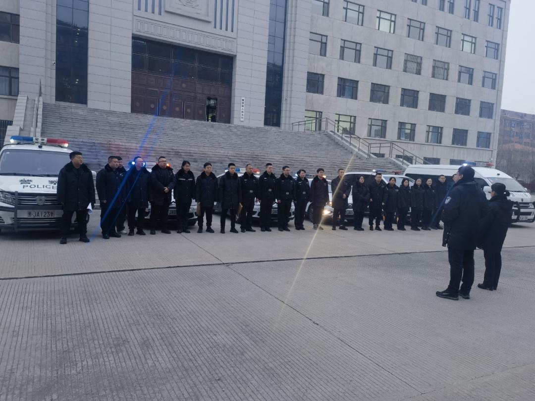 集贤县法院派出22名执行干警、4名法警、6辆警车,对15起执行案件的执行人进行早上执行。