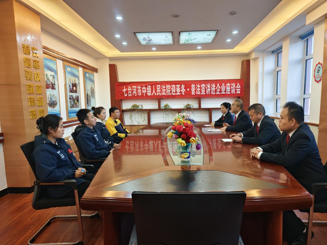 七台河市中级人民法院走进七台河百凝盾运动设备科技有限公司进行实地走访,召开“七台河市中级人民法院迎亚冬普法宣传企业”交流会,送法入企帮助企业解决相关法律问题。