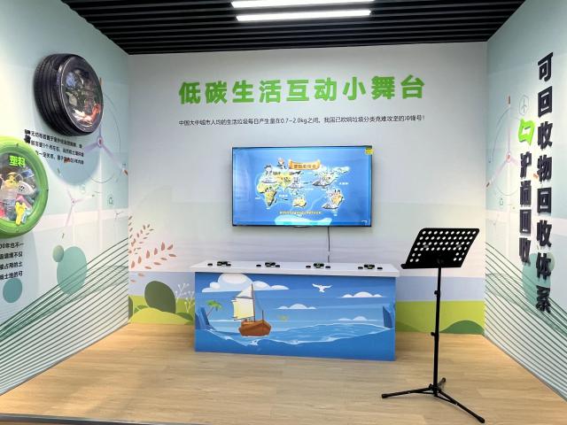 “互动馆”中,市民们可以“组队过关”,在有趣的闯关游戏中了解资源循环的知识。