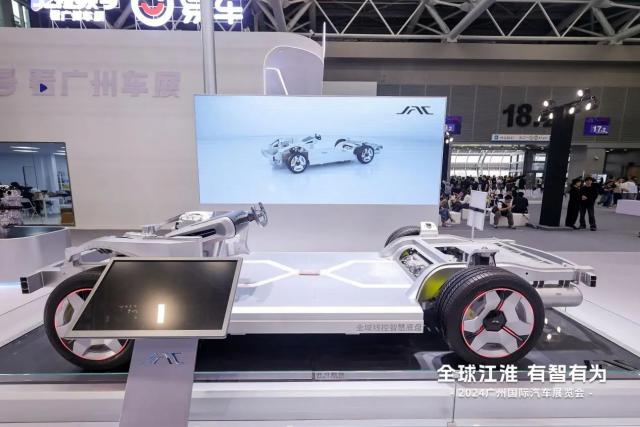 在展台上,引人注目的是江淮汽车推出的全球线控智能底盘。该系统通过自主研发 ICDC 实现车辆运动实时控制,提供智能底盘动态控制模块 8 各种运动模式,包括横移、蟹行、原地掉头等功能,提升驾驶体验。