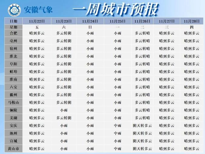 根据安徽气象预报