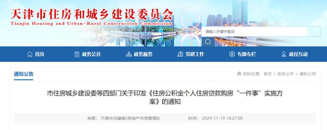 近日,天津市住房和城乡建设委员会网站发布了市住房和城乡建设委员会等四部门关于做好《住房公积金个人住房贷款购房“一件事”实施方案》的通知。其中明确: