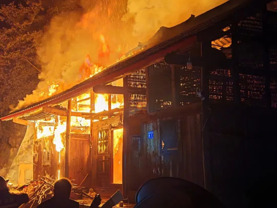 发觉一栋单层木结构自建民房起火