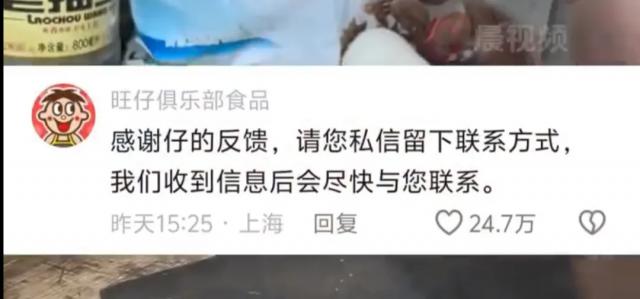 本公司已关注有关旺仔奶的相关舆论,公司高度重视,第一时间前往现场,积极与消费者沟通了解情况。