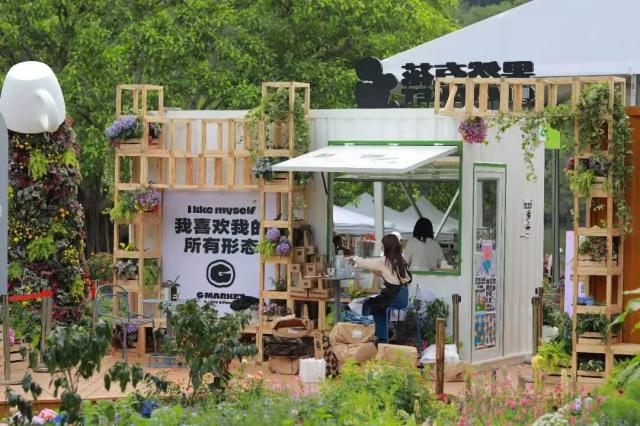 在“画情菊韵”节点,诗画中的菊花场景如雨后春笋般涌现。天然石材、青石板、松树与竹篱交织在一起,松菊相依,金菊盛开,古韵悠闲。其空间布局巧妙分隔,将竹篱和竹架分为室内、庭院、庭院三部分,展现了菊科植物的新优种类和造景艺术。在这里散步,就像穿越到古代,琴瑟和鸣,诗酒浪漫。