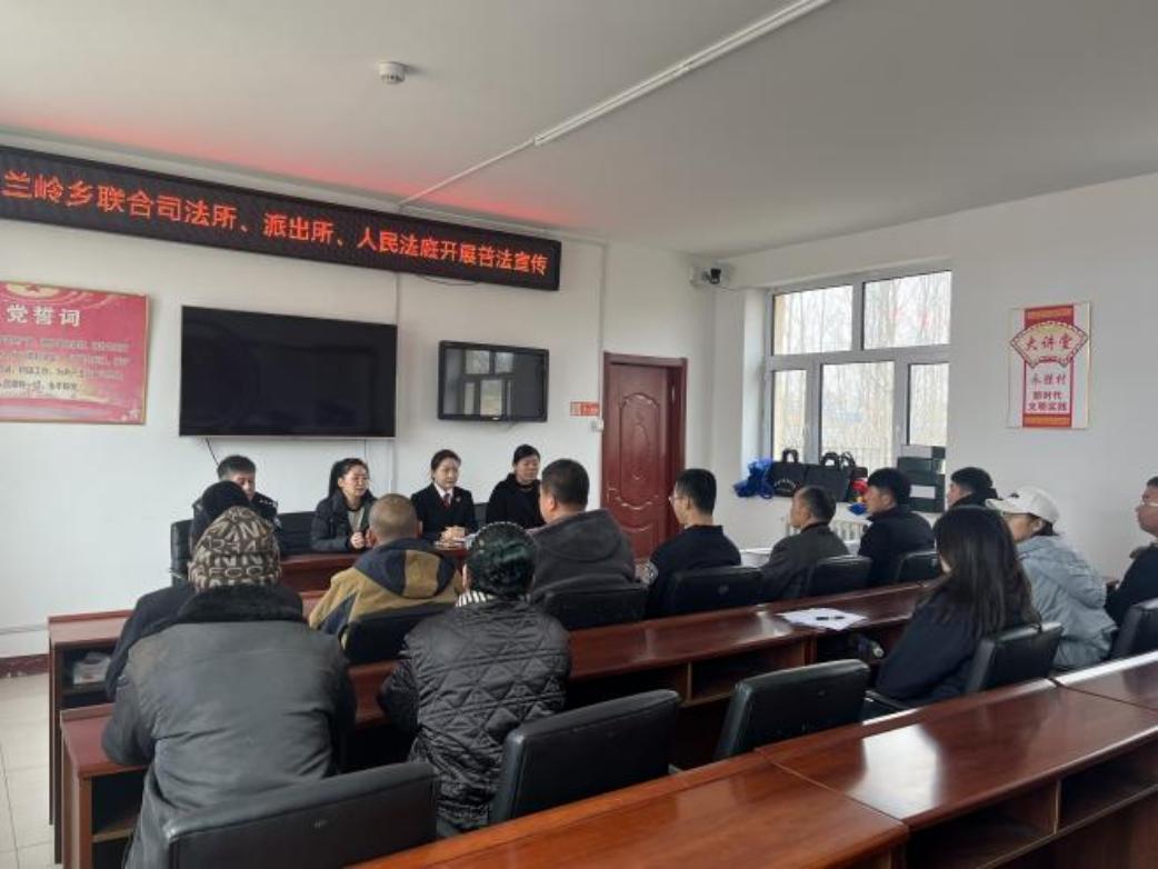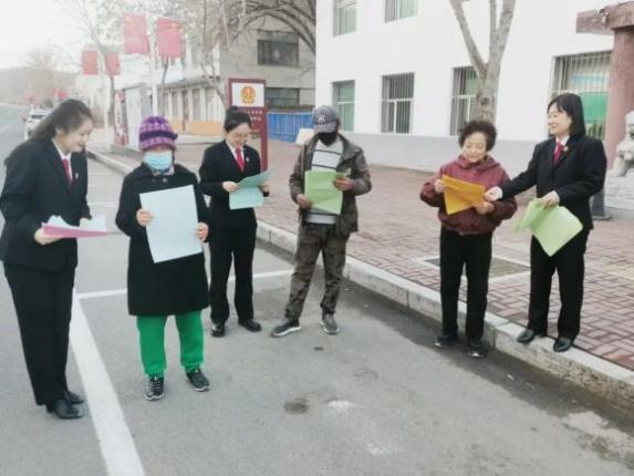 滴道法院兰岭法院开展农村普法活动,向村民发放普法宣传册,解答问题,讲解婚姻、赡养、传承等与之密切相关的法律法规和经典案例。