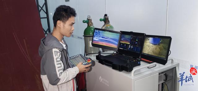 走进珠海市香洲区振海智能水下焊接实验室,一个篮球场大小的巨型水箱就在我们面前。我看到一个水下焊接机器人在操作人员的控制下慢慢潜入水中。在操作人员的控制下,机器人迅速对准焊接点,开始有序开始焊接检测。