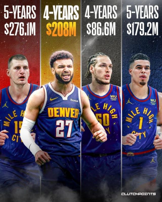 遗憾的是,没过多久双方仍然签订了续约合同,这次合同高达 4 年 2.08 亿美金,2025-26 赛季有效,直指 2029-30 赛季。也就是说,这份合同至少会绑死掘金六年,很多掘金球迷说:掘金结束了。一些相对乐观的球迷说:别担心,签新合同可能会爆发。