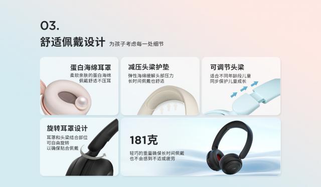 1MORE HQ20 整体设计符合人体工程学,结构轻巧。 严选舒适蛋白海棉耳罩181g,全包隔音耳罩,让学习更加专注。