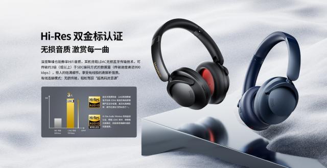 1MORESono Flow Pro 优异的声学性能,使其获得日本音频协会。 Hi-Res Audio 双金标识认证。无线传输支持 LDAC 无损解码,无线倾听同样享受有线高解析音质,真正实现“ HiFi 自由"。