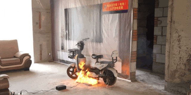 根据现场火灾温度,当电动自行车燃烧强烈时,现场温度超过700℃。此时烟气中的一氧化碳含量急剧增加,吸入3-5口会使人失去行动能力。一旦有人被困在火灾中,他们根本无法逃脱。