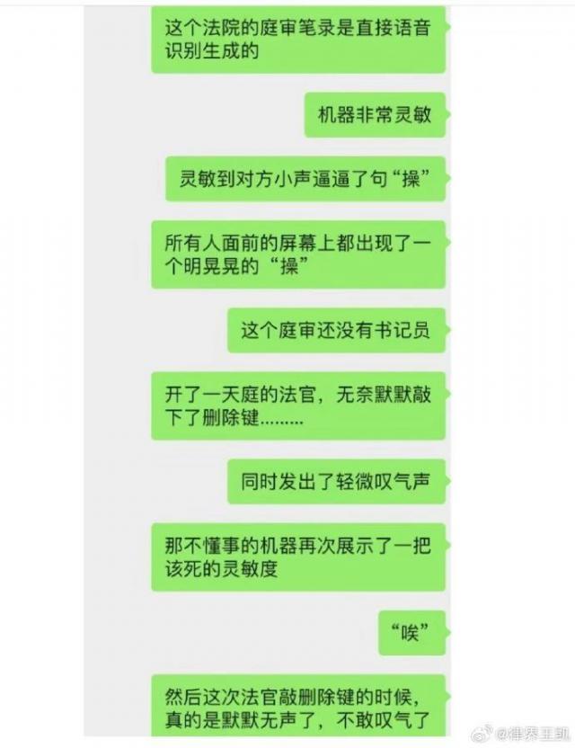 现在法庭庭审,很多都是用语音识别,方便做庭审笔录,只是语音识别过于敏感而不太好。