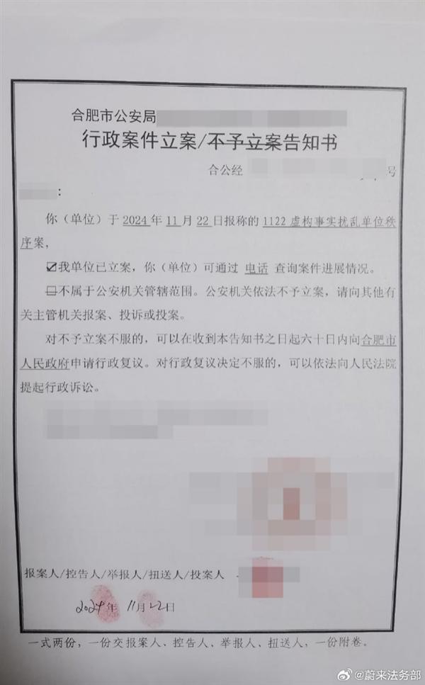 快科技 11 月 23 日消息,蔚来法务部今晚发文称,企业第一时间报警并受理了网上流传的蔚来等公司资本方面的谣言。