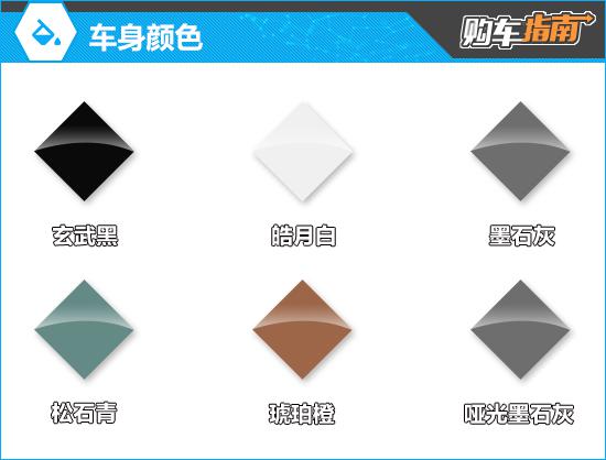 在车身颜色方面,新车提供包括皓月白、玄武黑、琥珀橙、松石青、墨石灰和哑光墨石灰(选择)在内的 6 种类可选。在这些方面,松石青、墨石灰的外观更加突出,客户可以优先考虑。