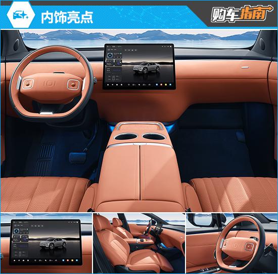 内饰设计简洁精致,非常注重科技感的营造。向日葵屏幕可以自动调节亮度和色温,遮阳板位置还配有女王副驾驶屏幕,配合 256 色彩呼吸效果氛围灯,为车内乘客提供舒适的出行体验。NAPPA 支持主副驾驶电动真皮双重力座椅 14 向调整和 12 点击按摩功能,进一步提高舒适度。