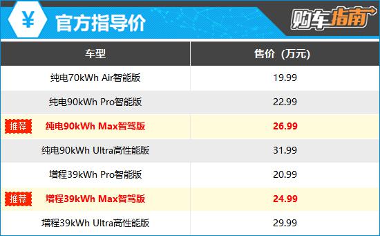 长安启源 E07 提供两种动力车型,个人推荐增加程度 39kWh Max 智能驾驶版和纯电 90kWh Max 智能驾驶版,与增程版相比,纯电动版多了热泵空调,主动关闭进气格栅和 1 一个激光雷达,但是没有发动机电子防盗,价格要高一些。 2 万元,其它设备两者完全一致。