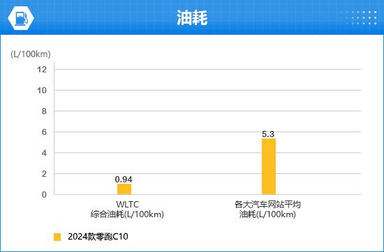 根据汽车垂直网站的统计数据,获得车质网络 2024 款零跑 C10 纯电版车主的实际平均电耗约为 17.8kWh/100km;增程版车型的实际油耗大约是 5.3L/100km(仅供参考)。