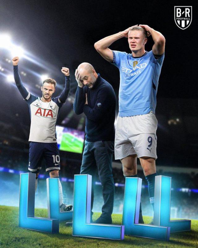 英超第 12 轮子,曼城主场 0-4 惨败热刺,各种比赛 5 连续输球!麦迪逊的第一个记录,格瓦迪奥尔在后场出球失误,孙兴邈在下一个城市助攻麦迪逊,索兰克助攻波罗,布伦南。 - 补时建功的约翰逊。