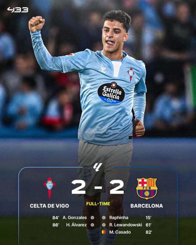 西甲第 14 巴塞罗那客场比赛 2-2 与塞尔塔战平,2 这是不可战胜的。孔德助攻拉菲尼亚的第一个记录,莱万扩大了比分,拉菲尼亚推出了中柱,卡萨多连续两张黄牌被罚下,冈萨雷斯和阿尔瓦雷斯。 3 分钟连入 2 球扳平。