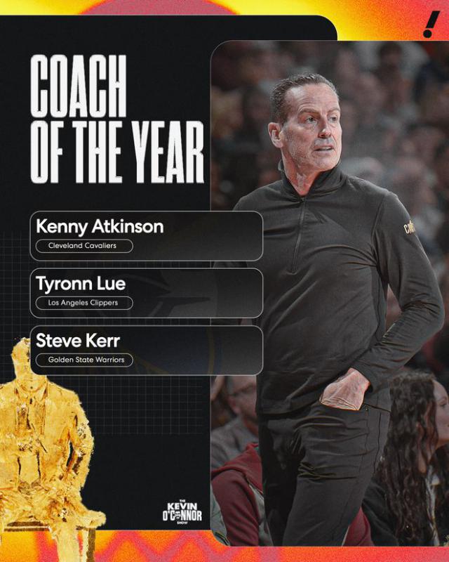 最佳教练方面,前三名如下——