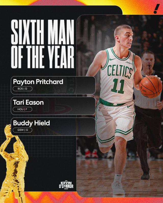 在最佳第六人奖方面,前三名如下——