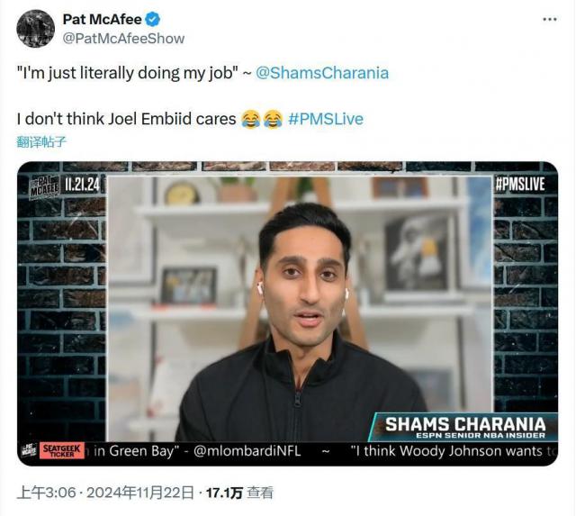 关于恩比德和乔治的批评,这个消息的爆料者 Shams 在节目《Pat McAfee Show》中公开回应:“的确,我真的只是在做我的工作。我真的觉得双方都有一定程度的尊重。但我想说的是,在很多情况下,我相信很多人都会知道这些事情,但我真的只是想每天做好我的工作。”