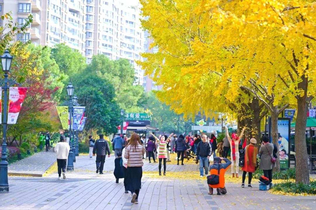 在黄金城道步行街,街道两侧矗立着100多棵银杏树。一棵树绚丽的金色装饰了这个街区,不仅惊艳了古北的每一个秋天,也成为了上海著名的银杏欣赏地。