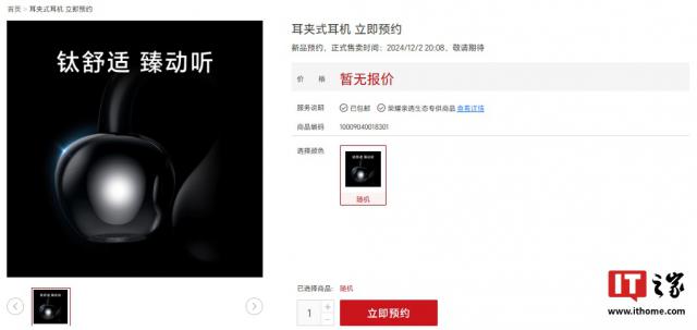 官网打开荣耀耳夹式耳机预约:C 桥梁设计,纯黑色配色