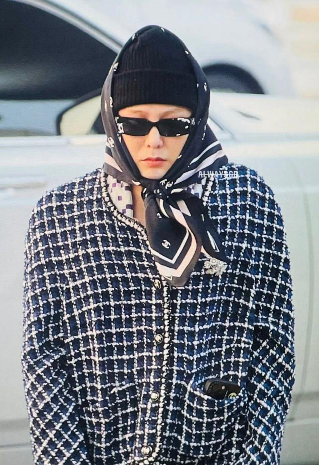 总而言之,最近的权志龙,无论走到哪里,无论头上戴不戴帽子,都要配一条方巾。