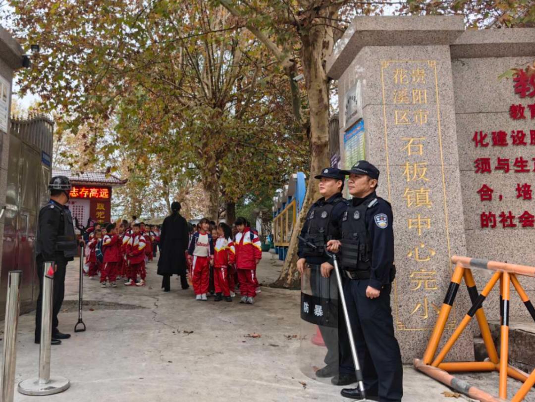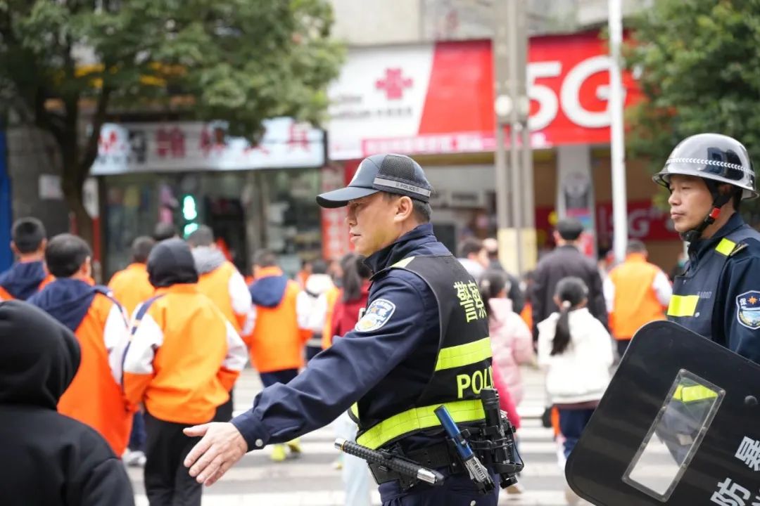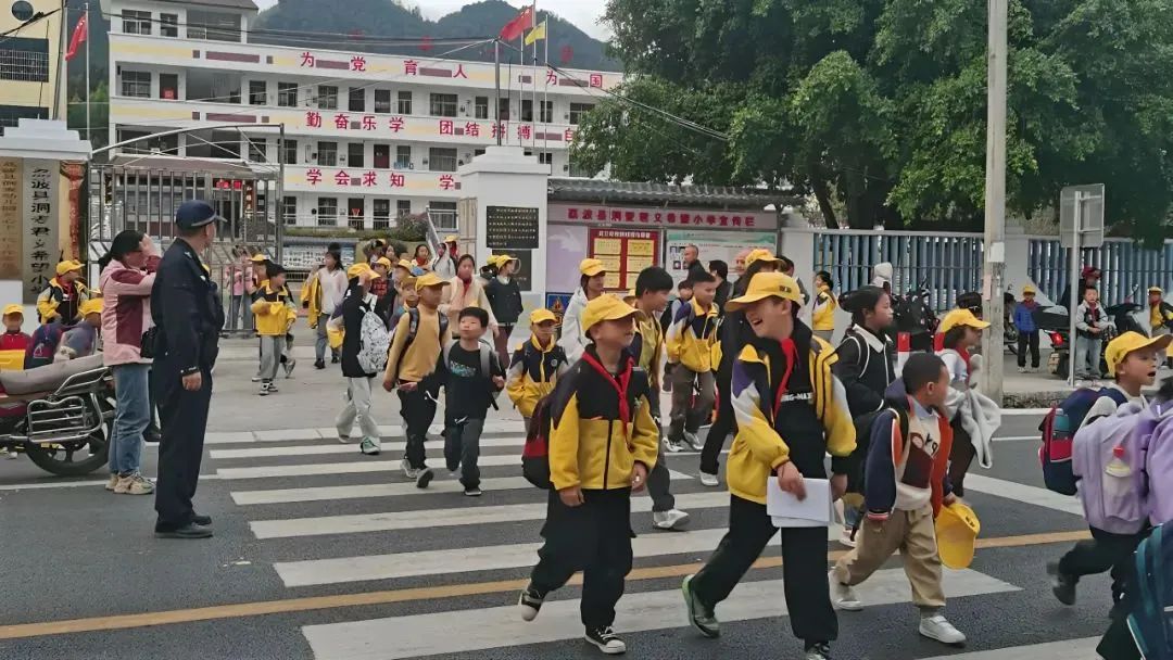 在校园人群和校外交通中,贵州市公安民辅警坚持“不缺席”放学,站在每一个班级的“护学岗位”,用实际行动热心护航“上学路”,为学生提供“安全伞”。