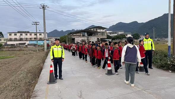 早上,黔南省荔波县公安局各辖区值班民辅警提前到达学校门口和重点路口,值班检查护送学生安全通过斑马线,引导接送学生的车辆立即停车离开,防止车辆长时间停留在学校门口造成拥挤。同时,对学校周边及重点路段进行安全调查,说服和查处乱停乱放、非法掉头等交通违法行为,最大限度消除道路安全隐患。