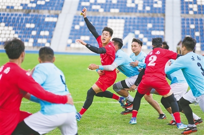 ①十一月二十三日,在第十二届全国少数民族传统体育比赛中,主办国海南队和云南队2:2握手言和。海报集团全媒体记者 李天平 摄