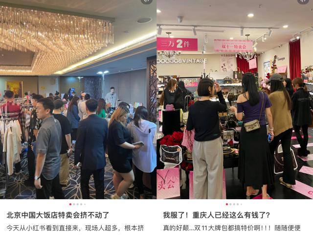 在大喊“消费观已经崩溃”的同时,博主们一边晒出来。百元抢购奢侈品牌。T 恤、1000 块状蒙口羽绒服,1-3 折的 Gucci、迪奥们。