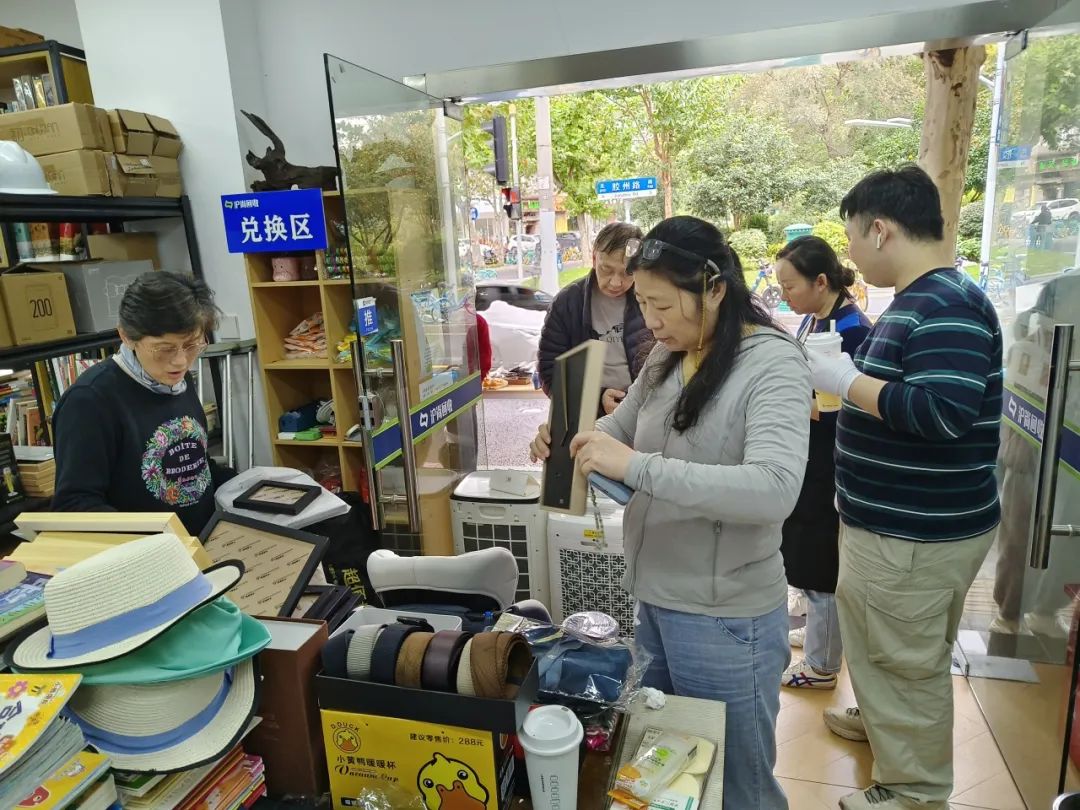 每月在胶州路827号的惠民服务点准时开放“闲置物品更换市场”和可回收物品转运站。服务点整齐地摆放收集到的各种闲置物品,包括闲置的小家电、各种款式的服装、鞋子、包包、日用品等。市场上挤满了人,很多多年没用过的物品都找到了新的主人。