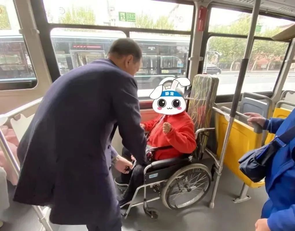 近日,一位老人拖着坐在轮椅上的妻子慢慢来到210路高平路的尽头,正在网站上巡逻的210路安全管理员徐磊注意到了这一幕。他立即迅速上前。首先,他礼貌地询问了老人的需求。安顿好两位老人上车后,他小心翼翼地抬起轮椅,把它放在公共汽车上。