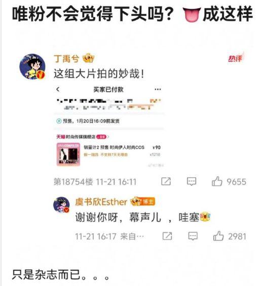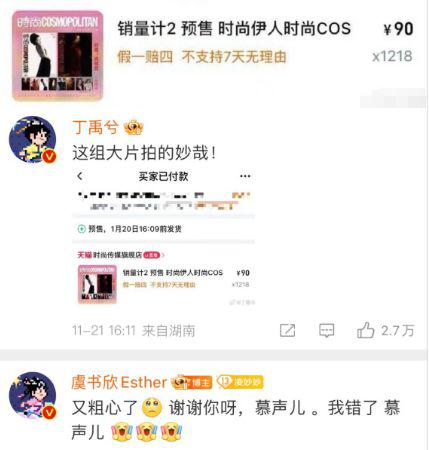 虞书欣杂志一发布,丁禹兮就大胆地购买了它。 1218 套杂志。