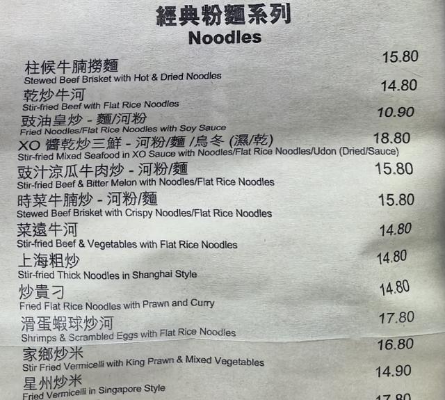 任何一种炒河粉,15 人民币接近人民币 140 元。