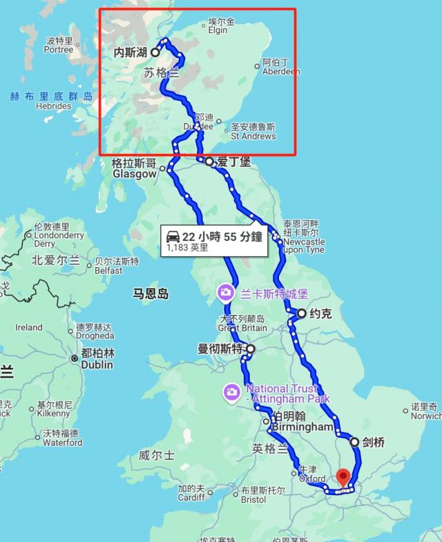 这次旅行我开到爱丁堡也没有再往上,红框部分放弃了。