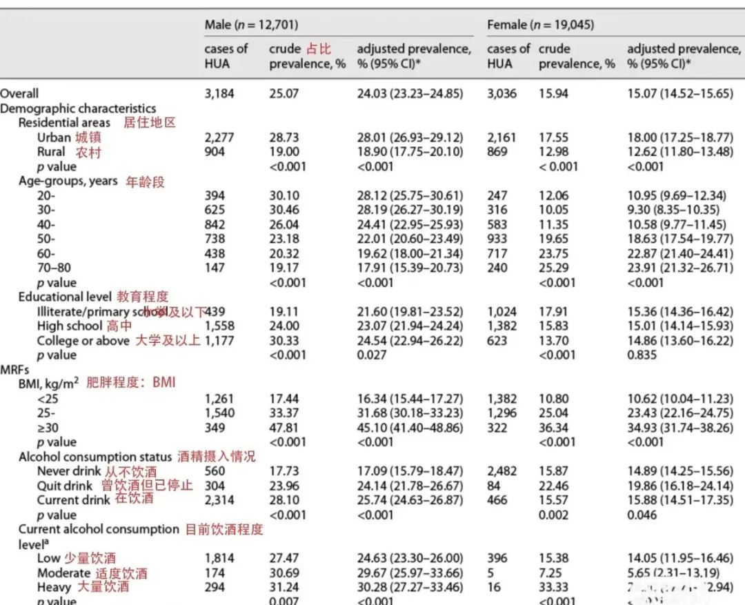 在一般认知里,与高尿酸直接关联的痛风多发于年龄大的男性,由于女性的雌激素能促进肾脏排尿酸,男性痛风患病率约是女性的3倍,在女性绝经后差距才开始明显缩小。