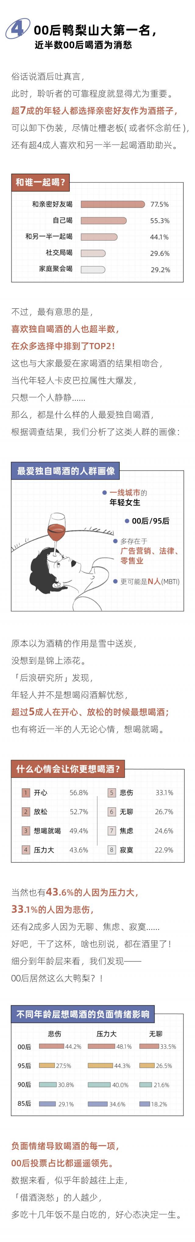 酒不仅是社交的必备品,也是生活的调料:可以是朋友聚会时的轻松饮品,也可以是独自享受时光的微醺伴侣。年轻人享受酒本身带来的快乐,这是生活态度的体现,是忙碌生活中偷半天闲的自由。