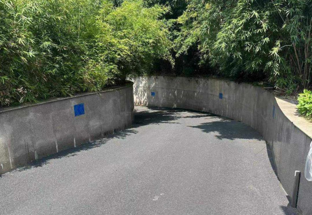 →以前是水泥搓板路的地下车库出入口,现在是柏油路。