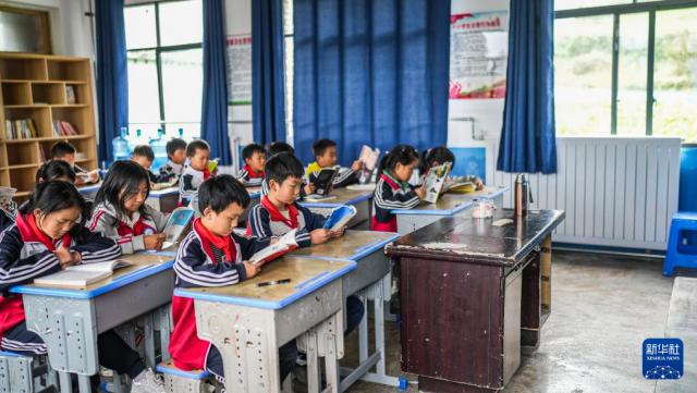 △亮岩小学的孩子们在供暖教室里学习。新华社记者 陶亮 摄