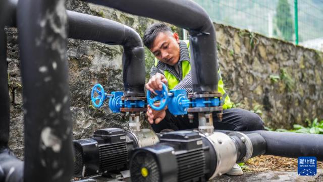 △工作人员正在检查亮岩小学的供暖设施。新华社记者 陶亮 摄