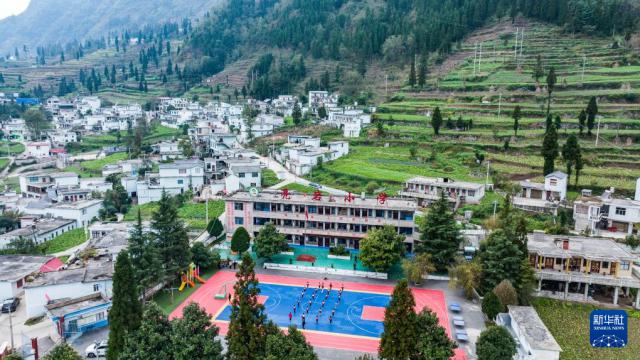 △亮岩小学(无人机照片)位于大山深处。新华社记者 陶亮 摄