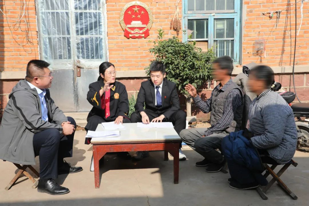 “走吧!我们上门开庭。”11月21日上午,兖南县人民法院涝坡人民法院孙兰华院长一行带着国徽到当事人李某家庭开庭。