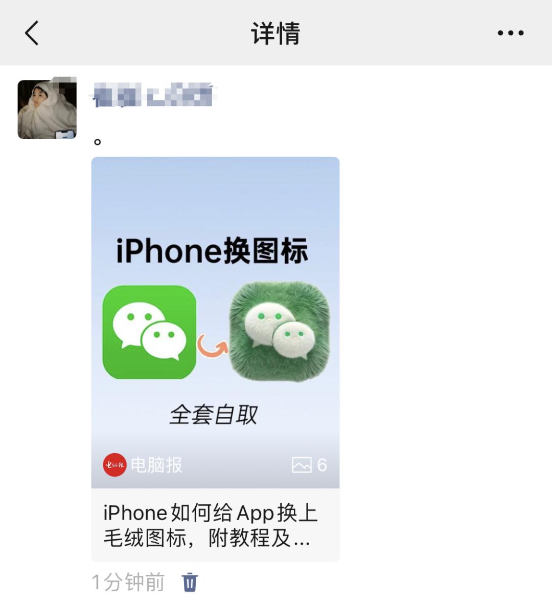 在微信官方账号分享图片信息(俗称“小绿书”)到聊天或朋友圈时,显示形式发生了变化和改善。从之前的“小图” 标题 “大图”,成为更具视觉冲击力的“大图” 标题“卡片方式”。