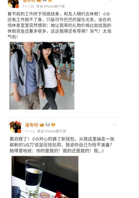 潘粤明不但用文字表示爱意,从他的动态中,可以看出,平日里的财权,他也交给了董洁。